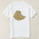 Um título e slogan editáveis acompanha o motivo amarelo dentro de um círculo azul sobre bandas verdes, amarelas e vermelhas da bandeira etíope na frente desta camiseta. O verso exibe um mapa detalhado da Etiópia.