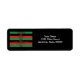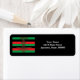 Uma etiqueta de correio Kwanzaa que diz os sete princípios do feriado e seu significado nas cores verde, preto e vermelho