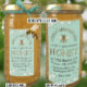 Abelhas de mel e aquarelas vintage, com cor verde de fundo do mar. "MEL" é escrito em texto de ouro metálico biselado. Seu nome ou nome apiário é impresso em texto curvo acima da abelha de mel.