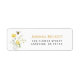 Um rótulo floral bonito com flores silvestres de cor aquosa minúsculas e uma abelha.