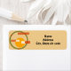 Estas etiquetas de endereço de retorno têm um desenho abstrato moderno do século médio de um círculo dourado dentro a um círculo verde com faixas laranja e brancas.