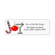 Cana-de-vela em forma de "J", um ornamento vermelho em forma de "o" e um martini em forma de "y", soletra "Joy" no cobrir deste rótulo de Natal caprichoso. Texto personalizável para seu nome e endereço. Temos cartões de saudação, papelaria e envelopes para este design!