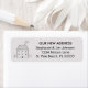 Uma cabana rústica com fumaça enrolando a chaminé é colocada sobre um fundo de lavanda leve no nosso novo rótulo de anúncio de endereço. Você pode personalizar facilmente o texto com suas informações pessoais no modelo prático. Um cartão-postal de coordenação "estamos a fazer downsizing" também está disponível.