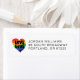Esta trabalho de arte apresenta a frase "O amor é o amor" projetada dentro de um coração colorido arco-íris.