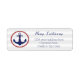 Estes cartões náuticos de endereço de retorno de âncora são perfeitos para uma empresa individual, familiar ou viagem! Eles apresentam um fundo listrado preto e branco. À esquerda da placa há um círculo de corda vermelho com uma âncora azul marinho no meio. Uma corda vermelha está envolta na âncora. Há espaço para o seu nome e endereço.