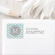 Etiquetas de Endereço de Retorno Clássico Azul Aqua e Cinza Moderno Chevron com Monograma.