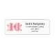 Etiquetas de endereço com um arco brilhante brilhante brilhante com contorno de ouro e uma pedra-pomes rosa facetada no centro. Estilo de luxo feminino.