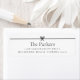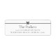 Etiquetas de endereço de retorno simples e doces apresentam um layout minimalista que é perfeito para seus cartões de natal de Natal ou por todo o ano. Personalize com seu nome e endereço de família em um tipo de serif clássico e limpo. Um pequeno arco preto no topo completa a design.