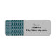 Essas etiquetas de endereço de retorno têm um design feito de cúpulas e linhas verticais em prata em um campo azul.