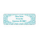 Estas etiquetas de endereço de retorno têm um design de Art Deco de diamantes ligados por linhas curvas em turquesa.