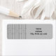 Essas etiquetas de endereço de retorno têm um design de arte de linhas verticais com diamantes e círculos em prata em um campo de cinza.