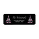 Esta elegante e chic return address label apresenta uma árvore de Natal de fita rosa e preta com uma estrela superior. O texto combina o script manuscrito e as fontes sans serif modernas para um aspecto elegante e sofisticado. A neve caindo, os flocos de neve e faíscas dão um toque festivo e mágico. Isto é perfeito para o Natal e para o feriado.