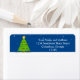 Árvore de Natal em verde com ornamentos coloridos e estrela amarela. Neve branca ao longo do chão e um fundo escuro de noite estrelada. Celebrar as férias com uma decoração de árvore de Natal fofa. Todos os Designs Copyright © 2012 www.CuteComfy.com