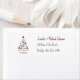 À esquerda do endereço impresso de retorno, existe uma árvore de Natal feita de brinquedos antigos: bonecos vestidos de vermelho, verde ou branco, cavalos de brinquedo, ursos peludos, macacos, elefantes e palhaços e também velas vermelhas. Na base, há a tipografia: a mensagem "Feliz Natal" escrita num elegante roteiro caligráfico vermelho e sob ele, o nome em letras vermelhas. Os brinquedos de vintage são de bonecas de papel tematizadas de Natal de Sheila Young, "Apresentando a avó de Lettie, que traz presentes de Natal para Lettie", de "A Família de Papel Lettie Lane", uma série de bonecas de papel publicada entre 1908 e 1915 no "The Ladies Home Diário", agora no dominio público.