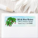 Uma bela ilustração de um coqueiro de palma tropical casal decorado com ornamentos de Natal. O fundo é uma lavagem aquosa de nuvens e céu. Personalize essas etiquetas de endereço de tema de praia com seu nome e endereço. Palmeira e arte aquática por Delightful-Doodles.