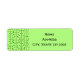 Estas etiquetas de endereço de retorno têm uma design moderna do século médio de linhas verticais pretas com linhas verticais castanhas e círculos verdes.
