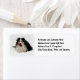 Um lindo e pudim preto trio australiano pastor deita-se na neve fria numa tarde fria de inverno. Ela está lambendo os flocos gelados saborosos do seu rosto com uma língua rosa grande.