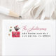 Um design de Natal bonito com um pássaro desenhado à mão vestindo um chapéu de Natal em cima de um presente vermelho. Há estrelas desenhadas à mão e pontos ao redor do pássaro. À direita, seu nome de família está escrito em letras modernas, com seu endereço de casa impresso abaixo. Visualize a coleção vinculada nesta página para itens correspondentes ou visite nossa loja para obter mais etiquetas de endereço de retorno.