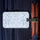 Uma etiqueta azul de bagagem de design é um acessório chic e viagem funcional, perfeito para adicionar um toque de elegância à sua bagagem. Ele apresenta uma base azul profunda adornada com padrões detalhados e intrincados, como os motivos florais, as formas geométricas, ou as espirais artísticas, criando um design único e atraente visual.