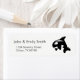 Um desenho animado giro pela baleia Orca com um pequeno coração branco perto da cauda. Personalize com suas próprias informações.