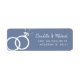 Um conjunto de etiquetas de endereço personalizadas Pigeon Blue com um escrevendo estilo esboço de rico e um conjunto de bandas de casamento brancas. Um item de excelente para combinar as cores do seu casamento com qualquer convite. Sinta-se à vontade para usar a função de personalização para mudar a cor do pano de fundo para se adequar perfeitamente aos seus convites de casamento.