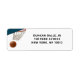 O endereço de basquetebol retorna as etiquetas de correio com uma bola e um aro de basquete únicos. Edite o texto para personalizar suas placas e convites de festas.