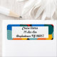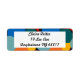 Essas etiquetas de endereço de retorno têm um design Bauhaus de formas aleatórias em azul, lacre, amarelo, vermelho e laranja.