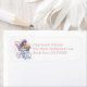 Etiquetas de endereço de retorno de chá de fraldas em branco, com gráficos de um bonito bebê buggy com flores e arcos. Personalize o endereço personalizado cor-de-rosa para atender às suas necessidades.