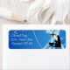 Bonitas etiquetas de endereços de volta de Natal retratam uma cena da Natividade Silhouette e um fundo em tons de azul e branco com céus estelares preenchidos e glória descendo. Fundo azul de inverno com flocos de neve, CC BY 3.0 US no Flower Vetor.*