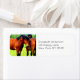 Rótulos de endereço de estilo russo. Uma fotografia de um belo par de cavalos de trabalho bonitos. Estes cavalos de raça polonesa são cor de baía profunda com homens e pernas pretos. Colocado contra um fundo verde de árvores e gramíneas.