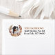 O lado esquerdo destas etiquetas de endereço de retorno apresenta um retrato de um Cão de Montanha Bernês. A imagem é fechada dentro de uma bonito coroa floral e foliar de outono em tons de marrom, bronzeado e creme. Seu texto personalizado está em preto e marrom-ouro à direita.