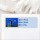 Versão azul de aquarela do famoso horizonte do centro Seattle, Washington sob uma lua de cheio.