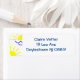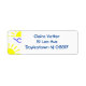 Essas etiquetas de endereço de retorno têm um design de Boho de meio círculo com linhas para fazer um sol e vieiras para fazer água.