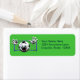Um presente de excelente para um fã de futebol. Uma bola engraçada de futebol de desenho animado guarda o objetivo do time oposto.