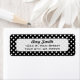 Essas etiquetas de endereço de retorno de tendência apresentam um padrão de bolinhas preto e branco moderno e pré-disquete.