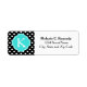 Legal padrão de bolinhas preto e branco de tendências geométricas bonitas e bonitas com um brilhante padrão azul turquesa em forma de quatrefoil marroquino, modelo para sua letra inicial de monograma personalizado. Rótulos de endereços modernos e coloridos chic.