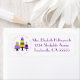 Três bolos de aniversário coloridos, em roxo, verde e preto. A bolinhas faz bolos com velas, para cima, com essa "Etiqueta de endereço de Feliz aniversário" - Personalize com seu endereço. Adicionar postagem correspondente, convites de festas e adesivos. Por favor, visite minha loja "The Hungarican Princess" em www.zazzle.com/hungaricanprincess*. Olhe no meu departamento de catagesorias de Convites de festas.