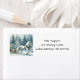 Um bonito cavalo branco caminhando com um trenó festivo em um dia de inverno com árvores derramadas de neve e uma bonito cena serena de natal retorna etiquetas de endereço.