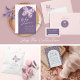 Borboleta Floral com Rótulos Personalizados do Caminho de Voo do Coração. Cores em roxo empoeirado, rosa e azul. Personalize com seu nome e endereço de retorno. © Kimbellish, LLC