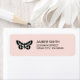 Essas elegantes etiquetas de endereço de retorno têm uma borboleta preta e branca sobre um fundo rosa-claro. Etiquetas de endereço bonito e chic para o seu correio!