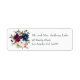 Etiquetas de endereço floral com cor d'água, de cor azul marinho, branco e cor vermelha de marrom e rosas.