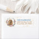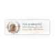 O lado esquerdo destas etiquetas de endereço de retorno apresenta uma imagem de uma coroa de primavera em cores de rosa mole, azul, dourado, verde e creme. No centro está um retrato de um cão americano coker Spaniel, de cor macaco. Pequeno confete de ouro dá um brilho sutil ao fundo. Seu texto personalizado está em ouro azul e marrom à direita.