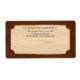 Uma etiqueta de envio para o especialista em gabinete. Uma superfície de madeira marrom de mogno serve como fundo para conter uma estrutura leve de aparência de madeira que mantém seu endereço de retorno comercial. Disponível com produtos correspondentes.