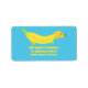 Adicione alguma cor ao seu correio com estas etiquetas de endereço de retorno divertidas. Apresentam uma ilustração fofinha de um cão feito de bananas amarelas contra um fundo azul brilhante. Seu nome e endereço aparecem abaixo do gráfico em letras amarelas brilhantes.