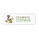 O lado esquerdo dessas etiquetas de endereço de retorno apresenta uma imagem de um lindo cachorro-pintor alemão branco e marrom entre girassóis espalhados. Seu texto personalizado está em marrom e verde à direita.