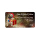 Um buldogue bonito, com um chapéu vermelho sentado em frente a uma caixa vermelha de presentes, olhando para a queda de neve na luz, única e personalizada etiqueta de endereço de retorno do tema do inverno com um tranquilo, sereno, sentimento festivo. Prepare-se para a correspondência da sua temporada, personalize os textos facilmente para você ou para um cachorro, especialmente os amantes do Pug ao seu redor, e diferencie seus e-mails em estilo. Feliz Natal!