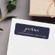 As etiquetas de endereço de retorno de azul e creme de meia-noite elegantes adicionam um toque de maior escala aos seus convites ou correspondência. Design apresenta um fundo marinho profundo com tipografia creme numa mistura de caligrafia e estilos de bloqueio. Comprar itens correspondentes aqui:
