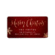 As etiquetas personalizadas de endereços de volta de Natal apresentam uma folha de ouro falso, escrita à mão, escrita por caligrafia "Feliz Natal" e flocos de neve em fundo texturizado vermelho, simples, moderno e elegante.