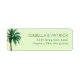 These return address labels feature a minimalist design with a single, vibrant palm tree illustration on the left side, set against a soft pastel green background. The clean layout includes elegant serif typography for your custom text, arranged in a centered alignment to maintain clarity and readability. The overall style is tropical and serene, evoking a sense of relaxation and sophistication perfect for adding a touch of elegance to your mailings. Ideal for those who appreciate simple yet stylish designs, these labels are great for personal correspondence or special occasions.