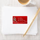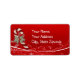 Uma bengala doce com uma fita oca sobre fundo vermelho com embelezamento de neve. Use como um pau na etiqueta de presente ou como um modelo de etiqueta de endereço. O texto é personalizável.